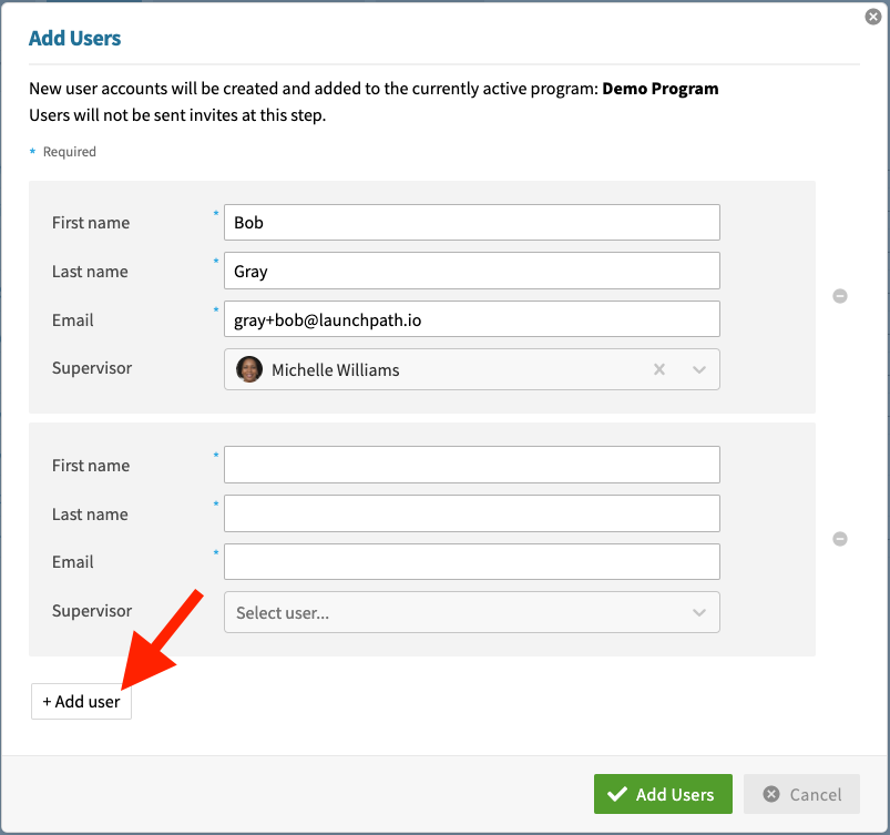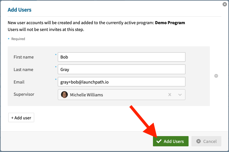 Fill out the form and then select the green Add Users button.