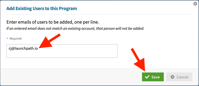 Enter the email addresses of the users you are authorizing to participate in this program (one per line) and select the "Save" button.