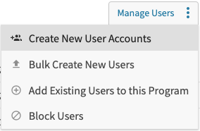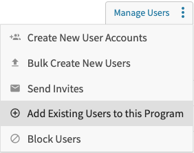 Hover over the Manage Users button and select "Add Existing Users to this Program."
