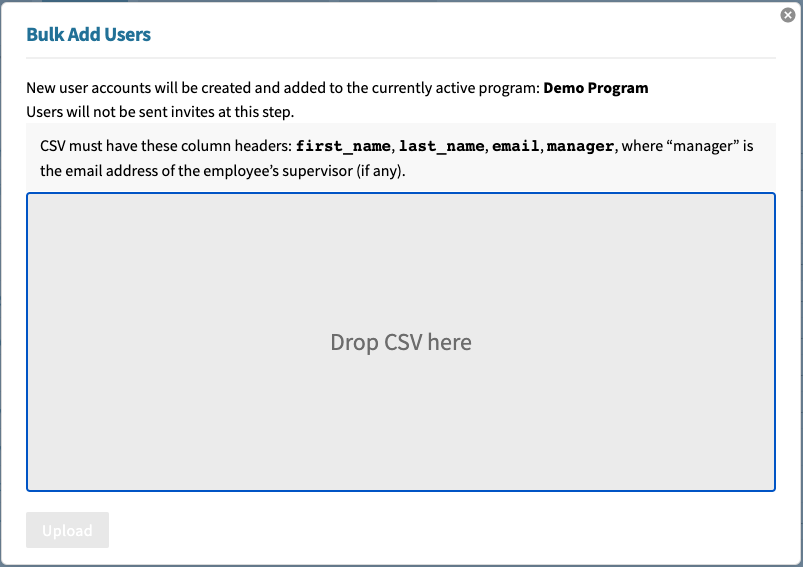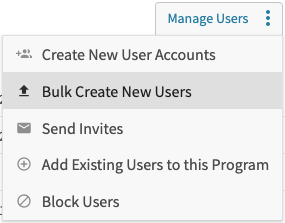 Hover over the Manage Users button and select "Bulk Create New Users."